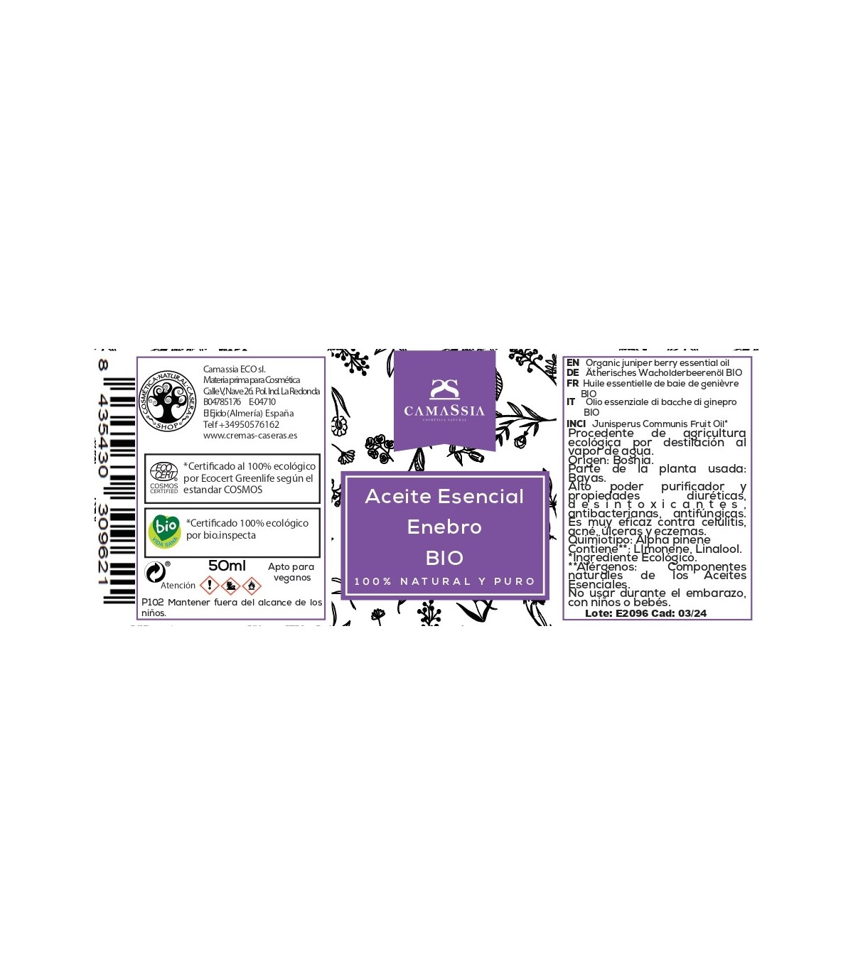 Aceite esencial de Enebro BIO 100% natural y puro de agricultura ecológica