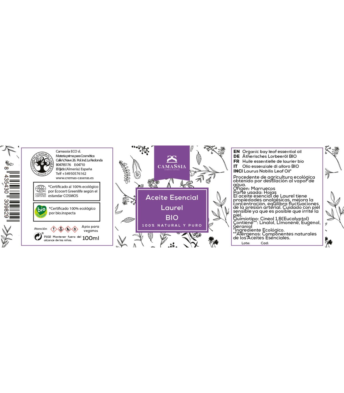 Aceite esencial de hojas de laurel 100% natural y puro - procedente de agricultura ecológica