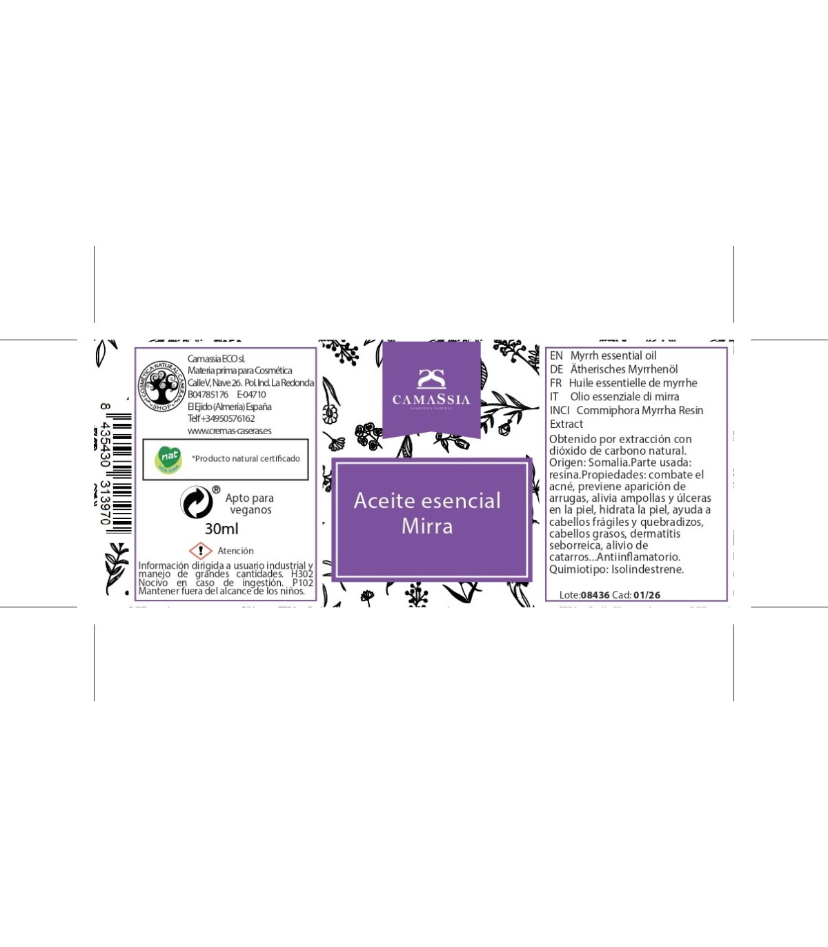 Este aceite esencial se origina en países como Egipto y Somalia y se obtiene a partir de la resina de mirra mediante un proceso de destilación al vapor o extracción al CO₂. Es especialmente apreciado por su capacidad para fortalecer y rejuvenecer la piel, haciéndolo ideal para el tratamiento de pieles maduras con signos visibles de envejecimiento.