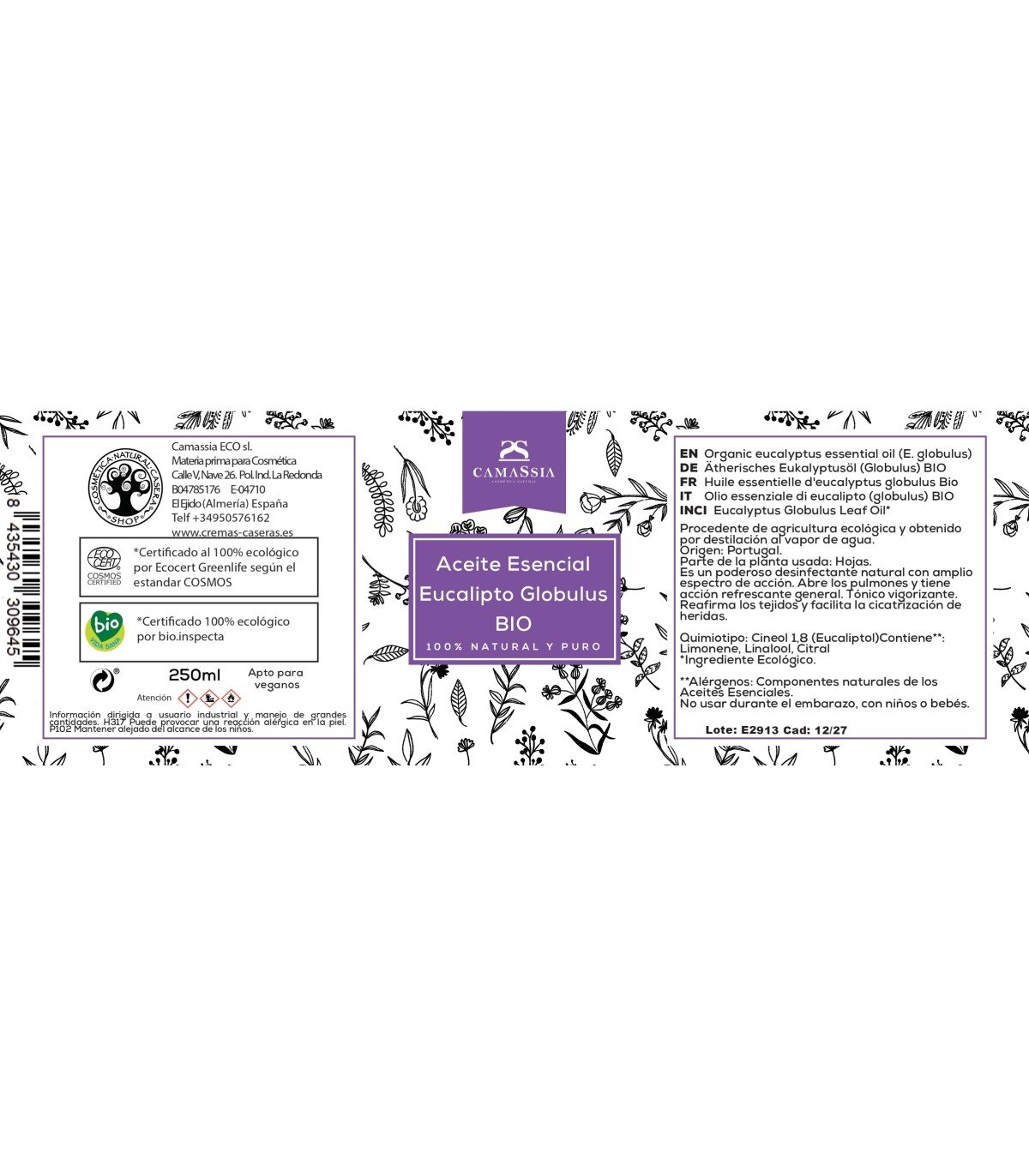Aceite esencial de Eucalipto - Eucalyptus Globulus BIO - 100% natural y puro - procedente de Agricultura Ecológica
