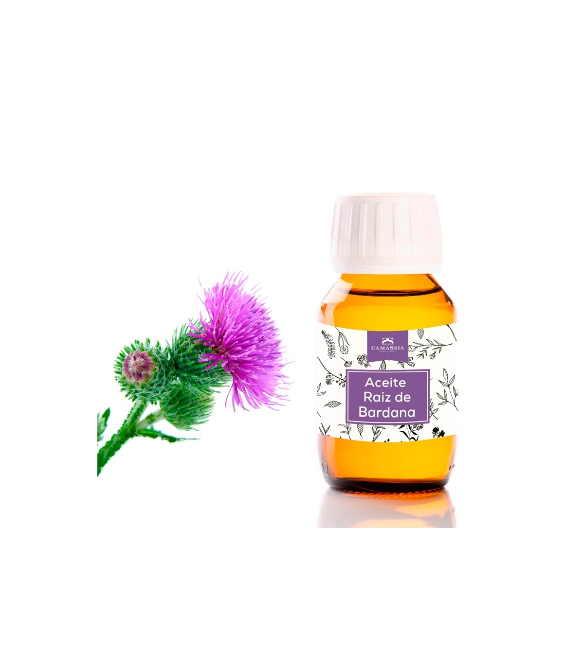 El aceite de raíz de bardana es indicado para el uso en productos para piel grasienta, piel con impurezas y algunas enfermedades dermatologicas, acne. Fortalece al cabello y es un buen ingrediente para elaborar champus anticaida o anticaspa. Tiene propiedades antibacterianas, antifungicas y antisepticas.