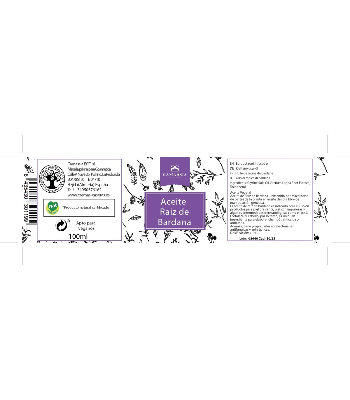 Aceite de Raíz de Bardana - Partes de la planta macerados en aceite de soja libre de manipulación genética