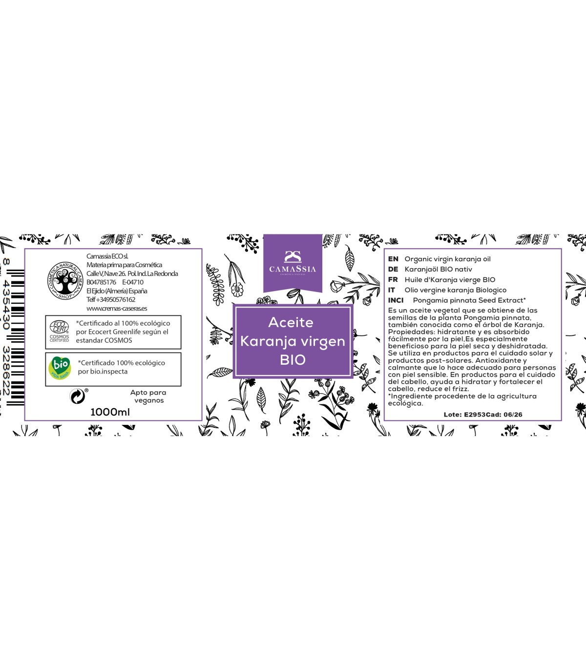Es un aceite vegetal que se obtiene de las semillas de la planta Pongamia pinnata, también conocida como el árbol de Karanja. Se produce siguiendo prácticas orgánicas, lo que significa que se cultiva y procesa sin el uso de pesticidas químicos ni fertilizantes sintéticos.