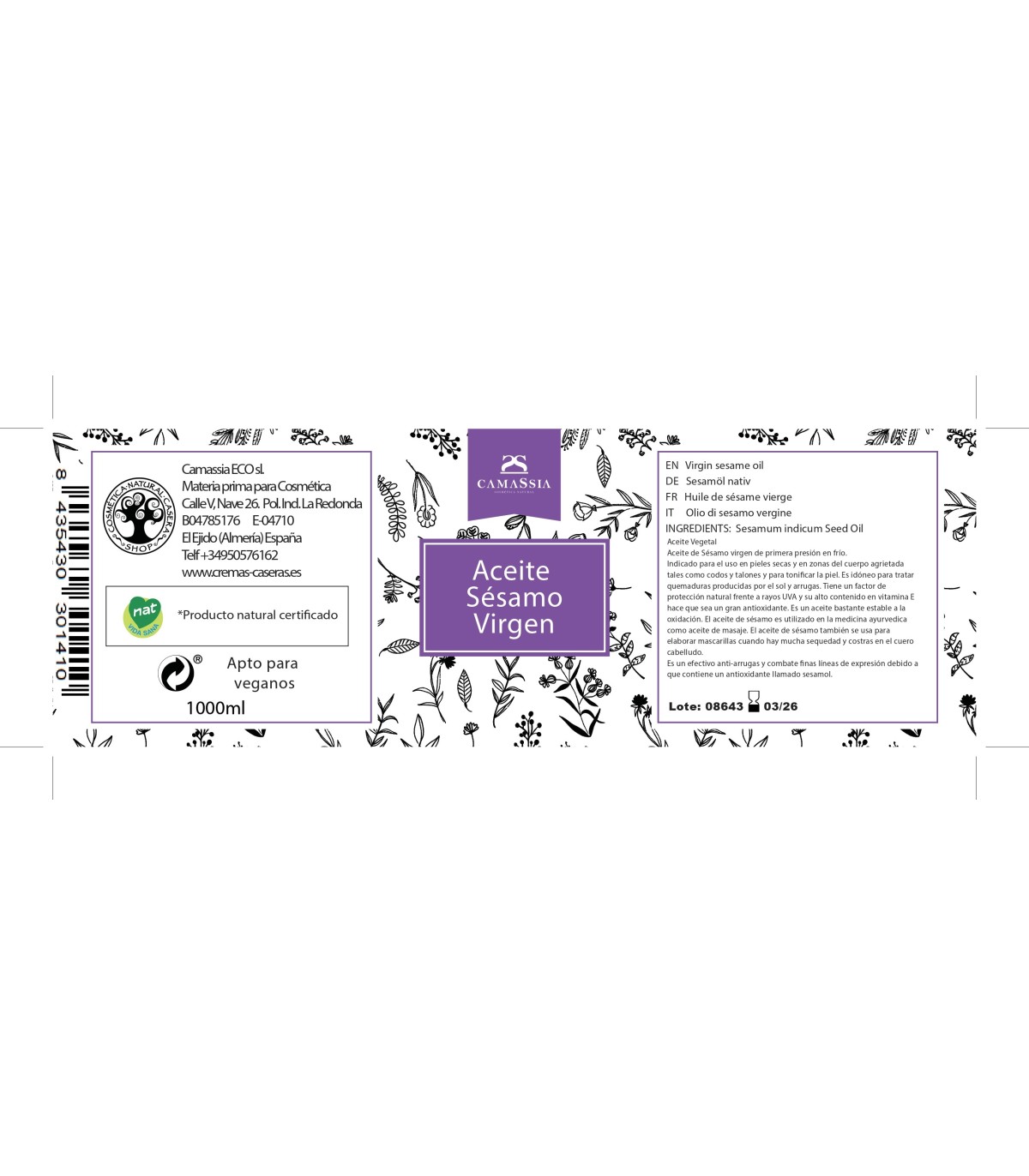 El aceite de sesamo es indicada para el uso de pieles secas y en zonas del cuerpo agrietada tales como codos y talones y para tonificar la piel. Es idoneo para tratar a quemaduras producidas por el sol y en las arrugas. Tiene un factor de proteccion natural antes las rayos UVA y su alto contenido en vitamina E hace que sea un gran antioxidante. Es un aceite bastante estable ante la oxidación.