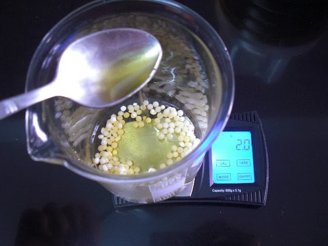 3. Medimos los ingredientes de la fase oleosa (aceites liquidos y los emulsionantes)