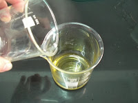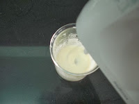 8. Verter la fase acuosa en la fase oleosa o sea el agua en la mezcla de los aceites y mantecas.