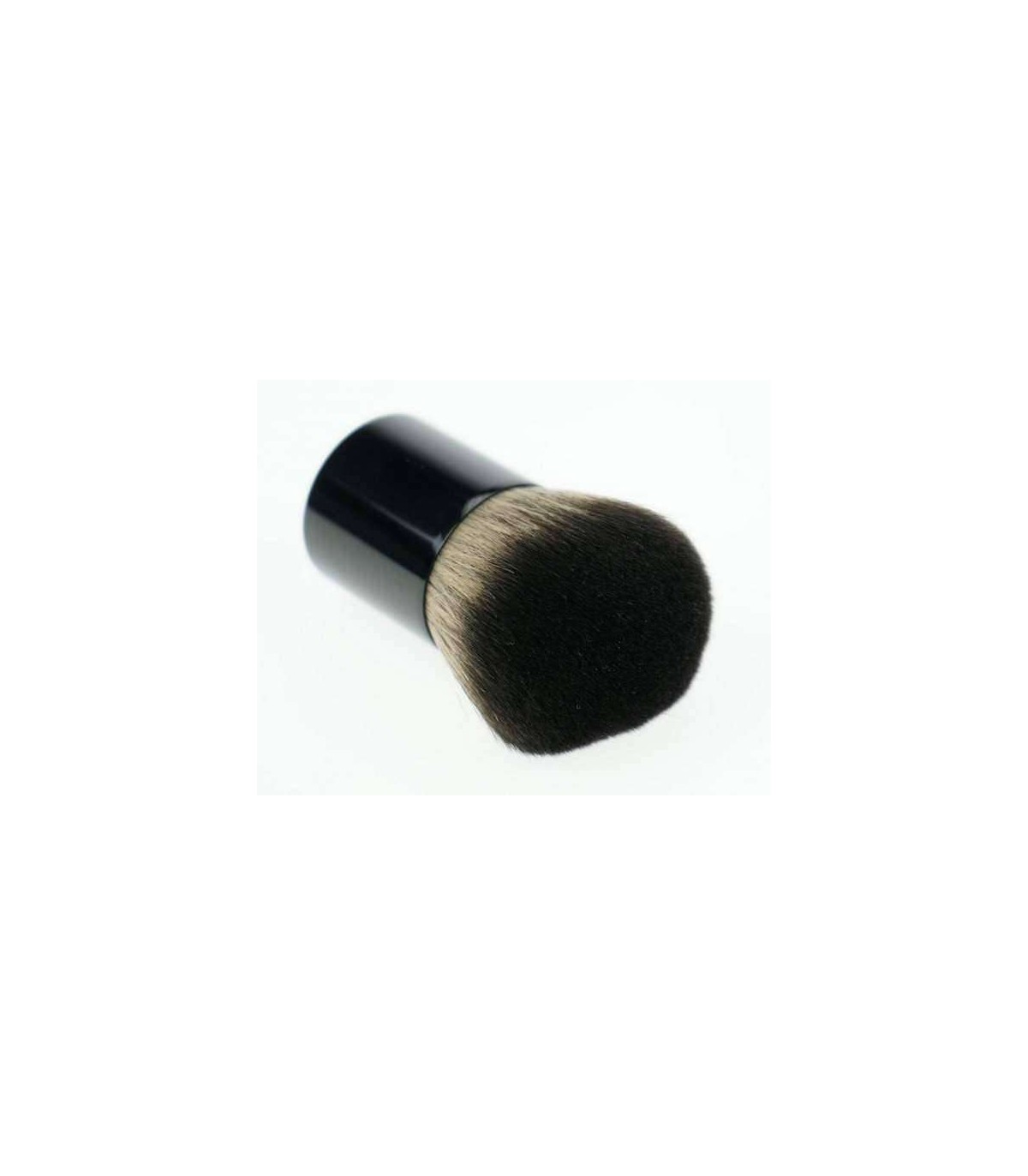 Brocha Kabuki de pelo sintético Toray. Color negro con decoración. Altura: 9cm, Diametro 3cm.