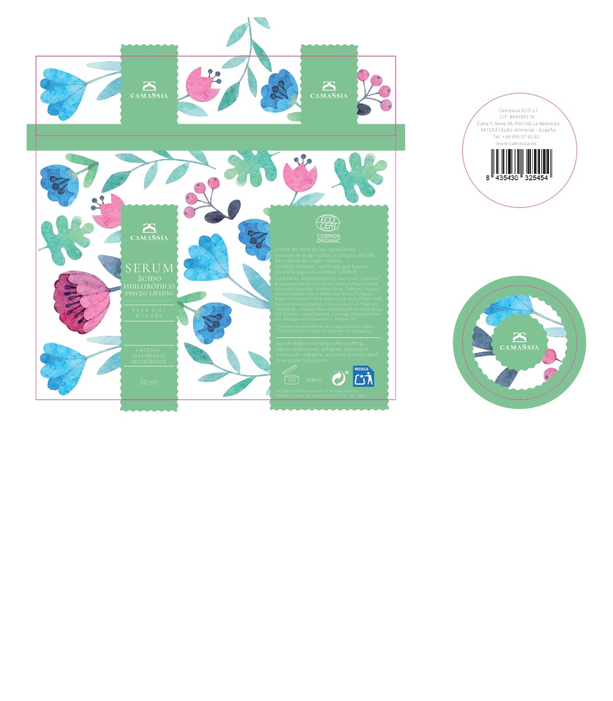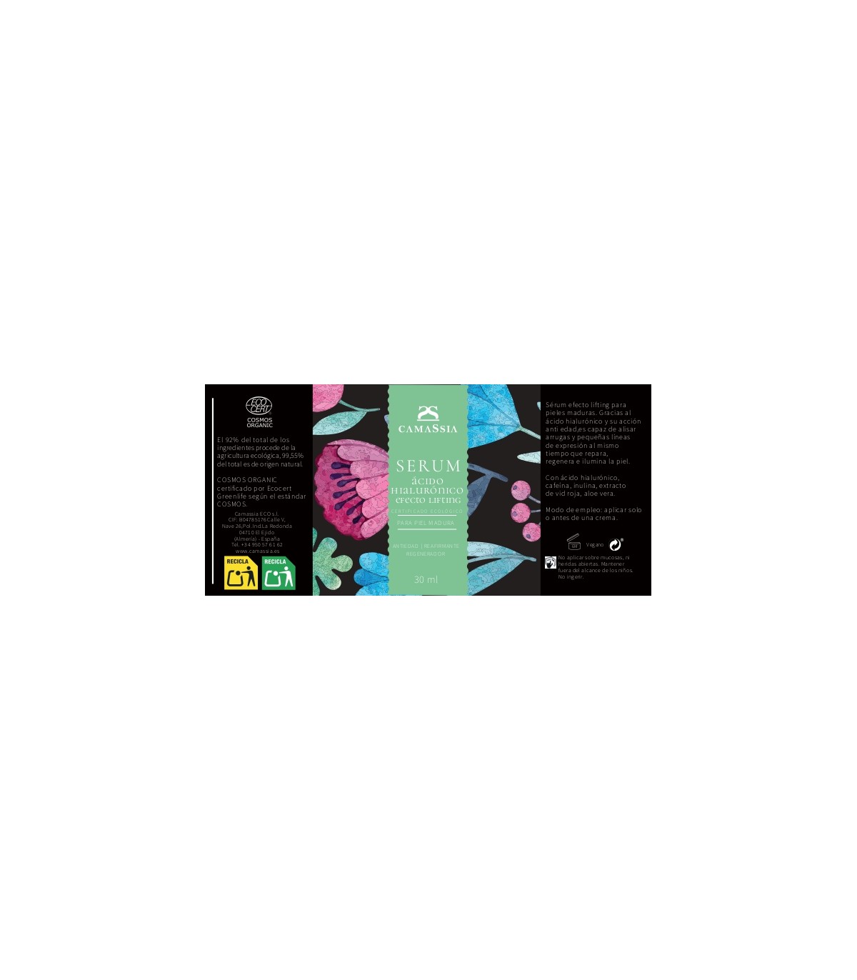 Ingredientes Sérum Ácido Hialurónico “efecto lifting" de Camassia