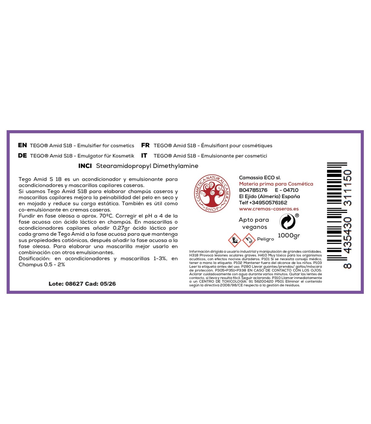 Tego Amid S 18 es un acondicionador y emulsionante para acondicionadores y mascarillas capilares caseras.