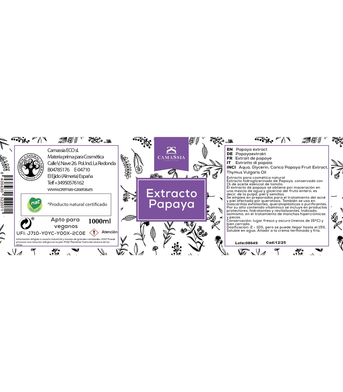 El extracto de papaya se obtiene por maceración en una mezcla de agua y glicerina del fruto entero; es decir, de la pulpa, piel y semillas. De esta manera se consigue una composición rica en todos los componentes activos.