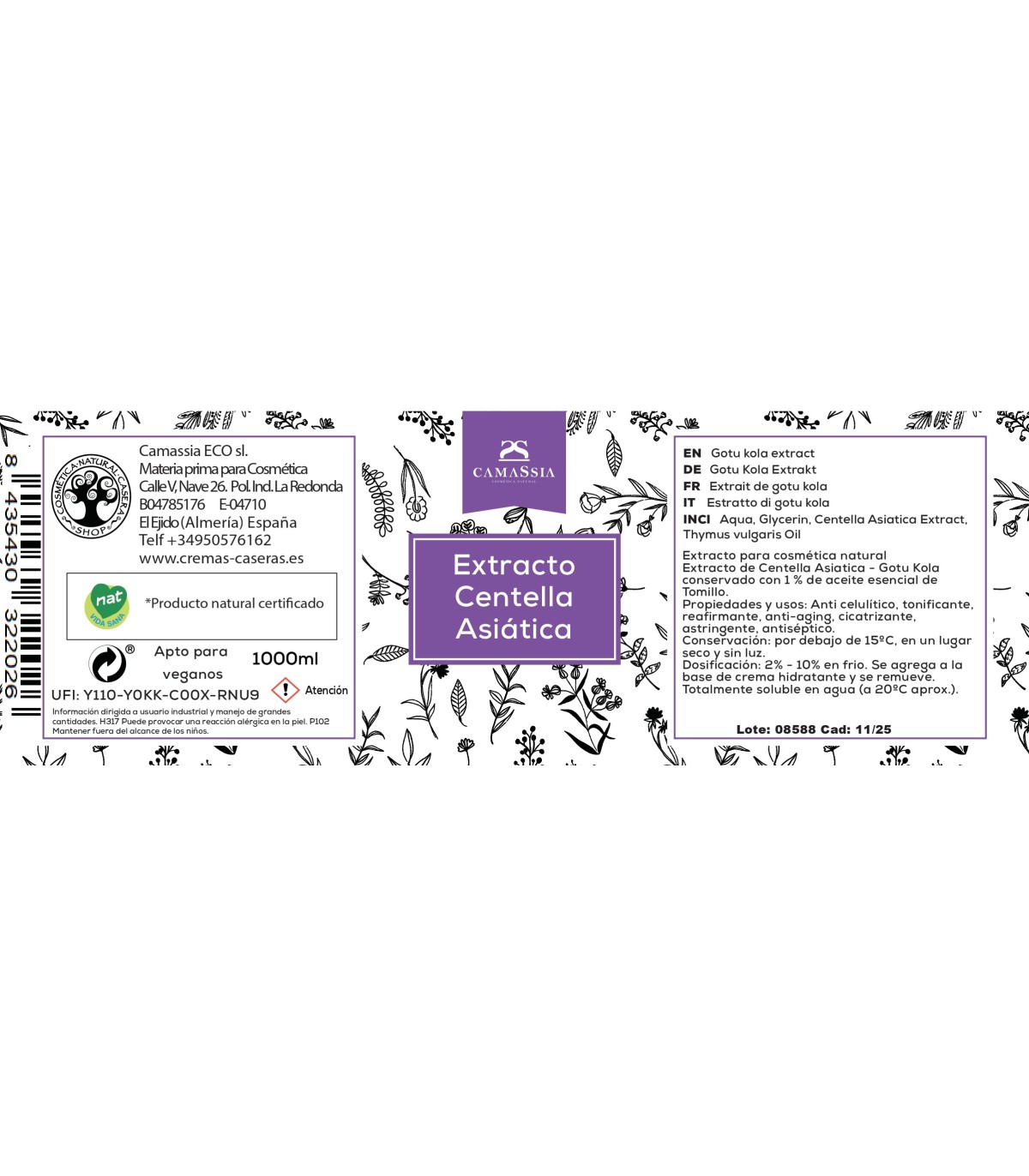 Extracto hidroglicerinado con aproximadamente un 20% de componentes principales activos de la centella.