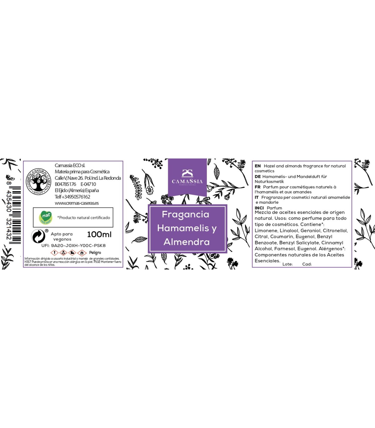 Fragancia de Hamamelis y almendra con aceites naturales