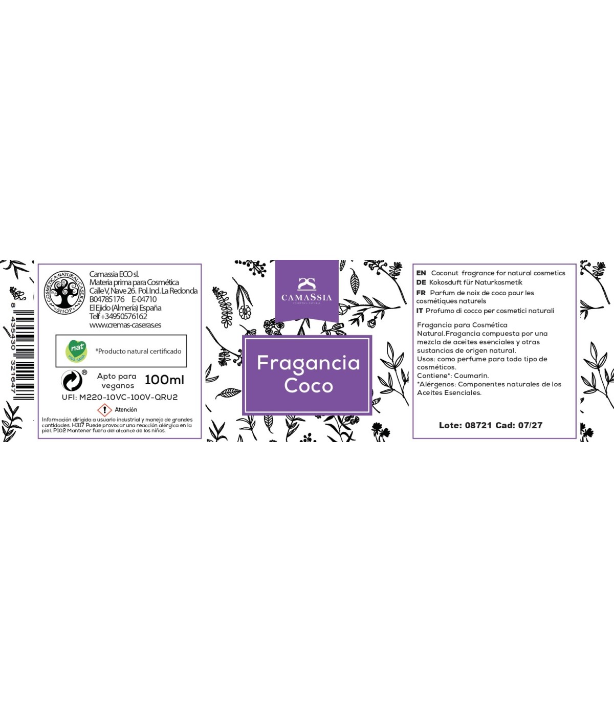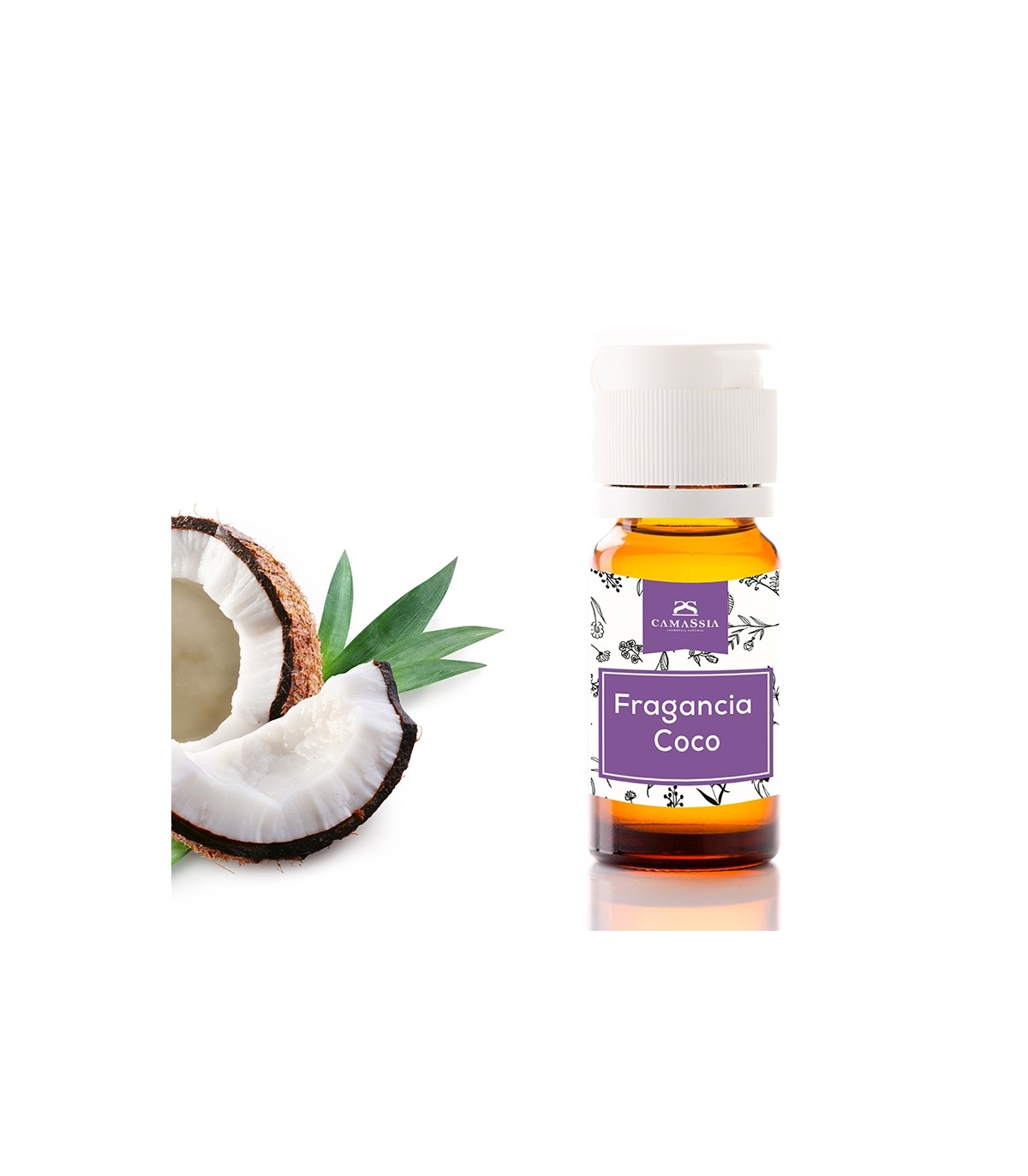 La fragancia de coco, que puedes encontrar en cosmética natural casera shop, es perfecta para aromatizar cremas y champús caseros, tratamientos capilares, además gracias a sus efectos relajantes, puede ser un perfume idóneo para centros de masaje, relajarse en un SPA… ¡hay que probarla!