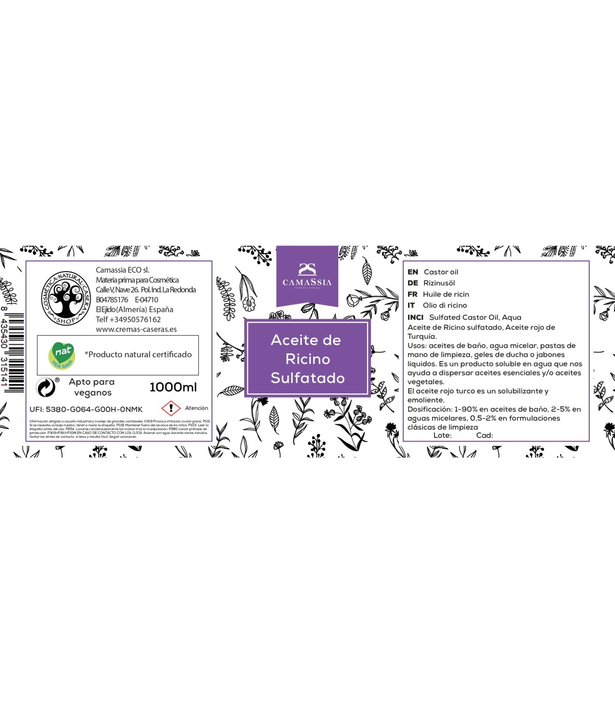 Además, el Aceite de Ricino Sulfatado contiene propiedades suavizantes y se aplica como agente rehidratante en baños de ducha y jabones líquidos.