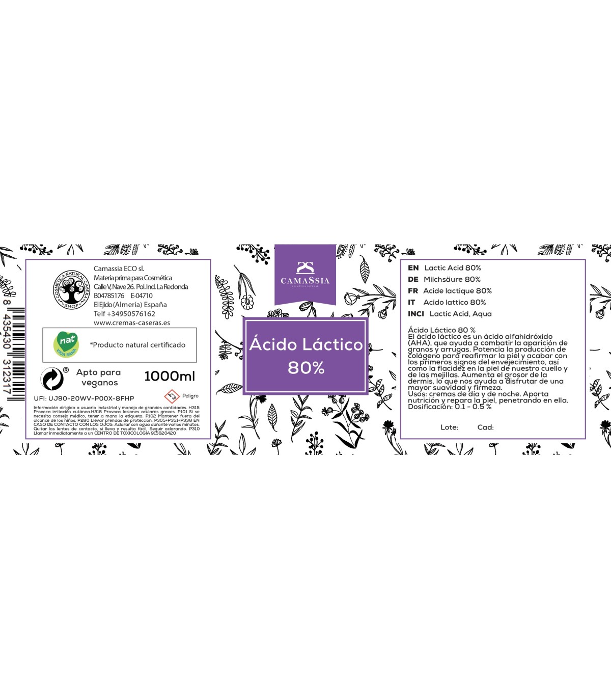 Se utiliza para regular el pH que poseen las cremas y cosméticos caseros, introduciéndose siempre al final de la elaboración del producto y siendo necesario que el pH de la emulsión se encuentre entre 5 y 5,5. En una dosificación baja el ácido láctico ofrece a la piel una hidratación extra (0,1% - 0,5%).