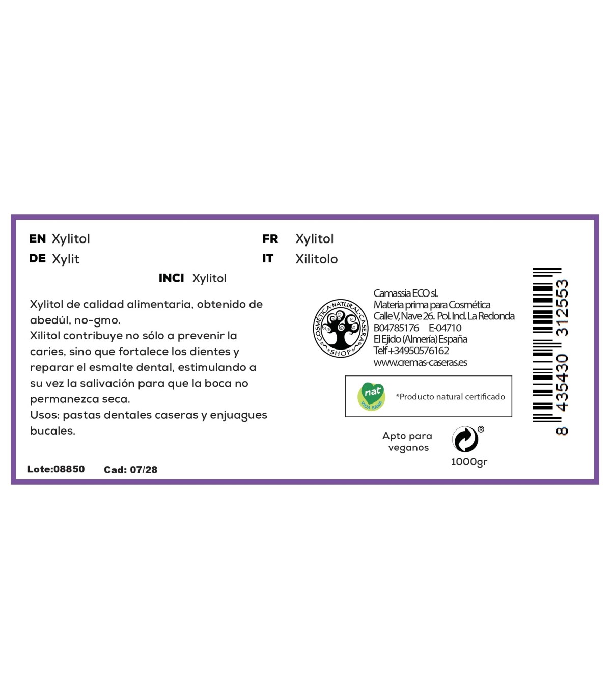 El Xilitol que puedes comprar ¡al mejor precio! en Cosmética Natural Casera Shop, es un alcohol de azúcar que se obtiene por la reducción del azúcar xilosa a través de un proceso que se denomina hidrogenación catalítica. Es también conocido como azúcar de abedul ya que la xilosa se obtiene de la madera de este árbol, aunque también se pude encontrar en pequeñas cantidades de algunas frutas y verduras (fresas, arándanos, ciruelas, maíz y avena).