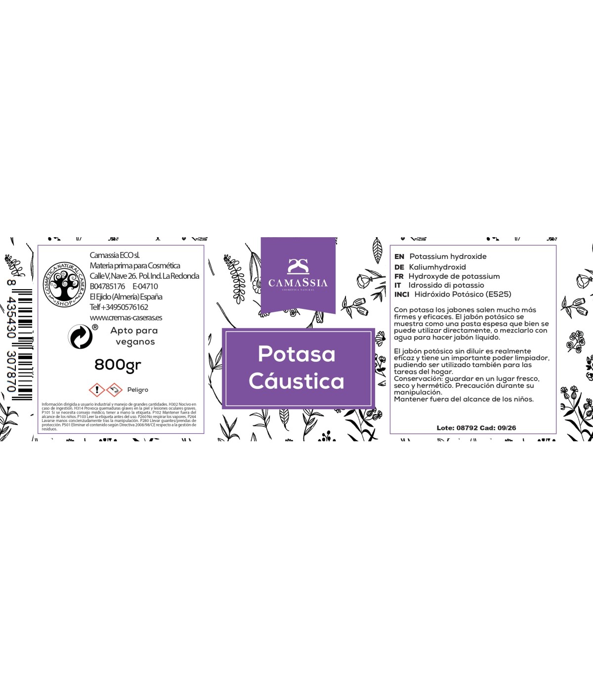 La Potasa Caustica (KOH) o el Hidróxido de Potasio, como también se le conoce, es muy similar a la sosa caustica (NaOH), con la particularidad que con la potasa los jabones salen mucho más firmes y eficaces. El jabón potásico se muestra como una pasta espesa que bien se puede utilizar directamente, o mezclarlo con agua para hacer jabón líquido, en función de los gustos y de lo que busque cada persona.