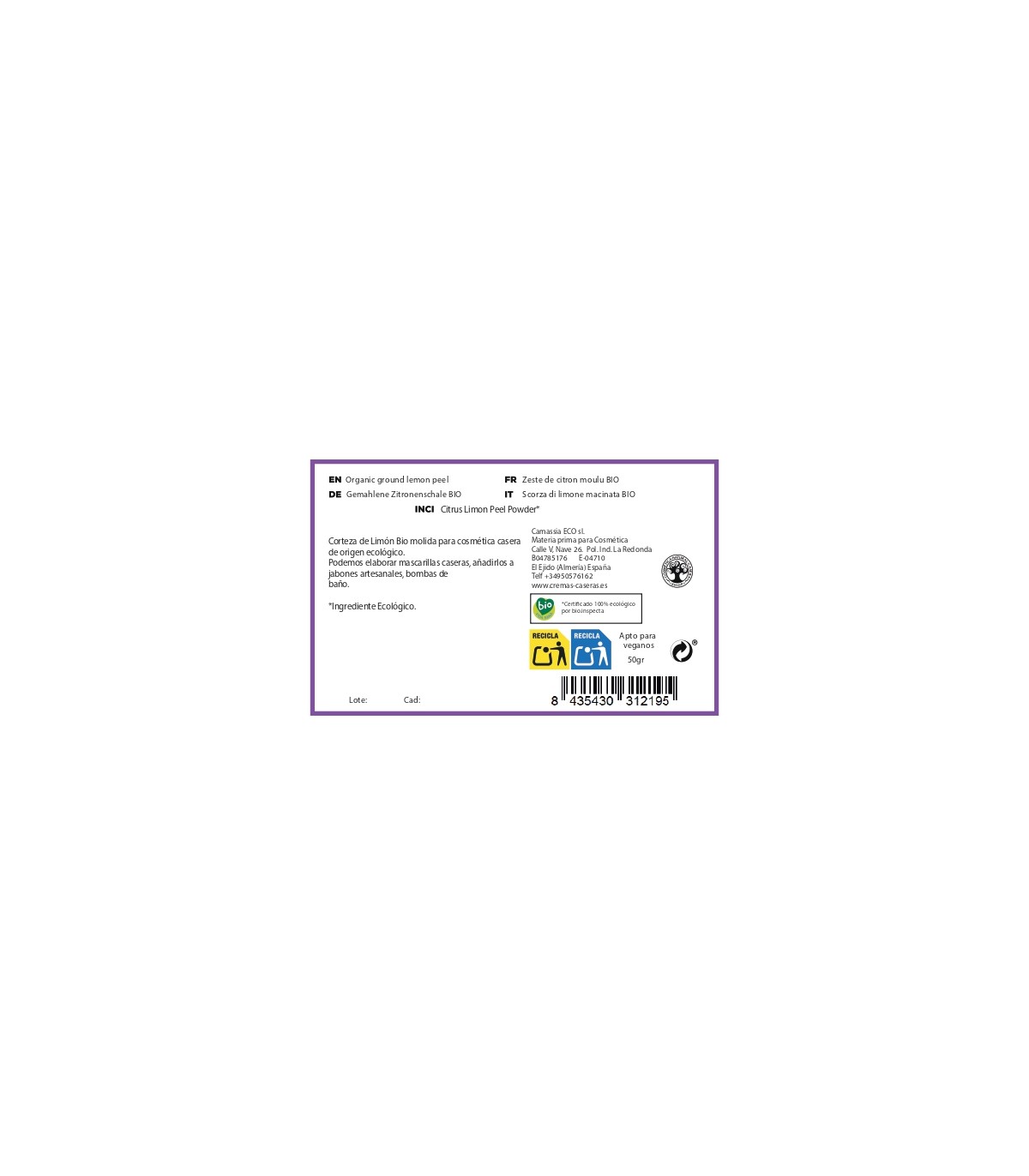 Corteza de Limón BIO en polvo para elaborar mascarillas caseras, jabones artesanales, etc.
