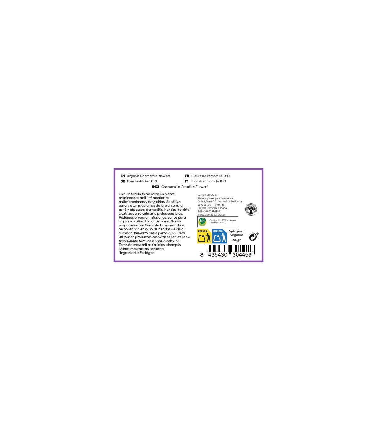 ¿Tiene alguna pregunta sobre Flores de Manzanilla BIO (Matricaria chamomilla) 50 gr?