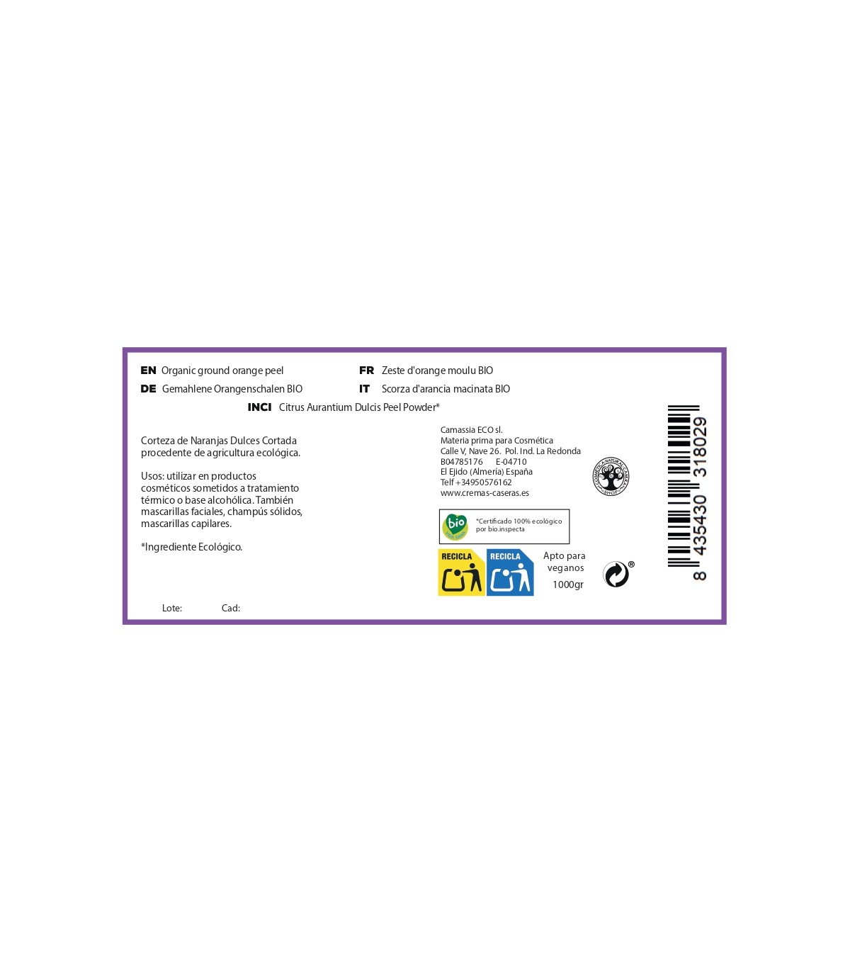 Polvo de Naranjas - Cáscara de Naranjas molidas