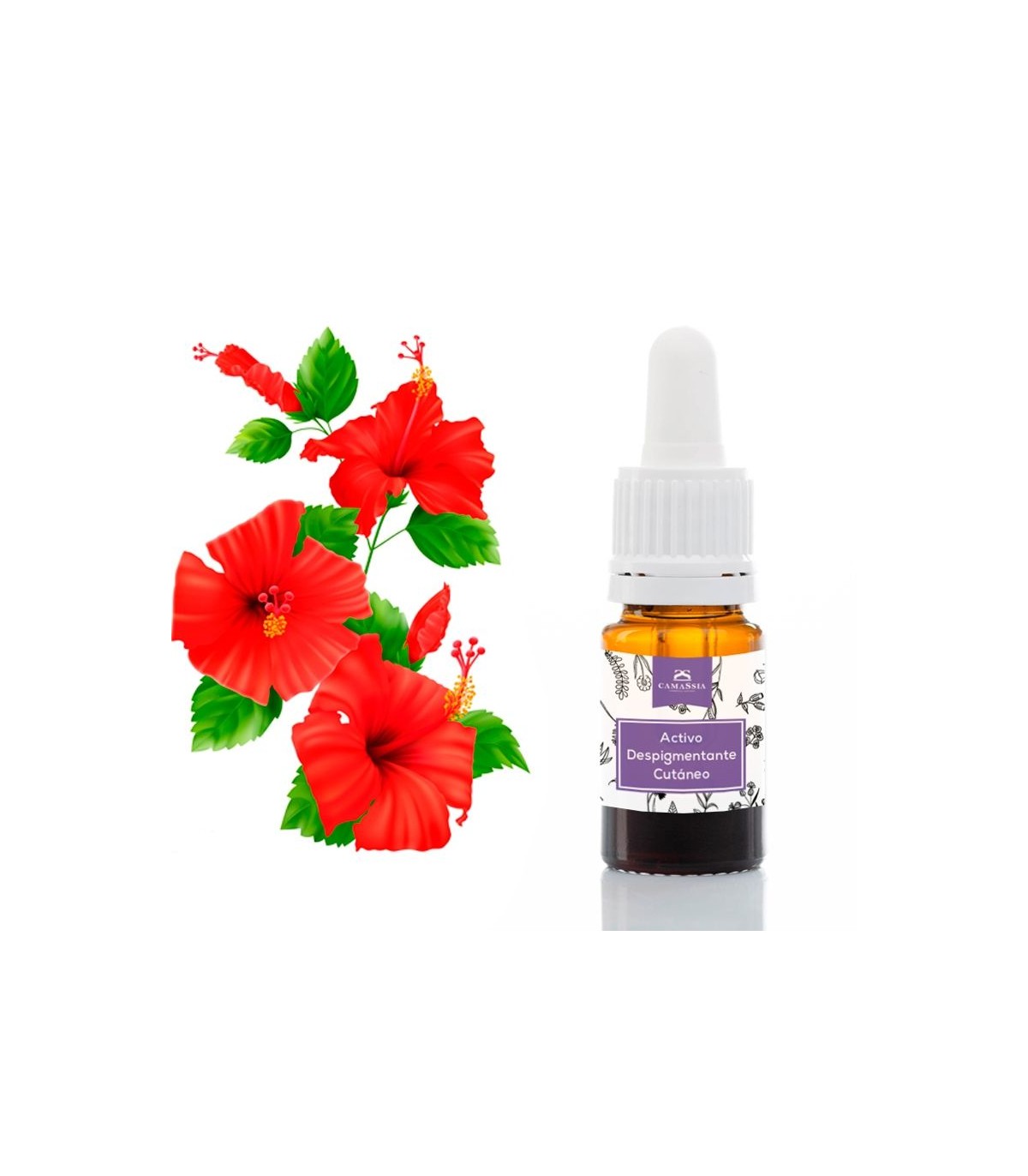 Los ingredientes activos de este concentrado han sido específicamente seleccionados para tratar las manchas de la piel. Concretamente, contiene extracto de hibisco, que es una planta tropical de la familia de las malváceas, muy rico en alfa- hidroácidos y bioflavonoides, con efectos ligeramente exfoliantes, protectores y despigmentantes. Para conseguir potenciar todos esos efectos, se ha sumado al Activo Despigmentante Cutáneo ácido kójico de reconocidas propiedades despigmentantes, al inactivar la enzima tirosinasa que cataliza la reacción oxidativa de la tirosina a DOPA, primer paso en la síntesis de la melanina.