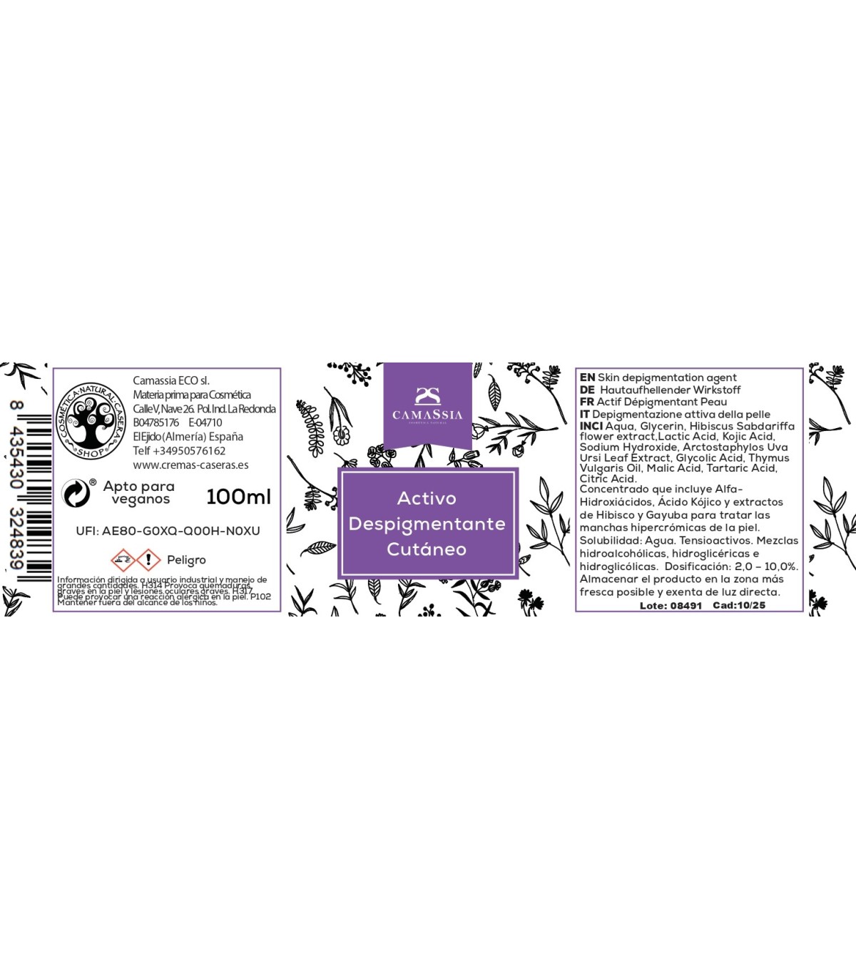 El Activo Despigmentante Cutáneo que puedes comprar en Cosmética Natural Casera Shop es un concentrado despigmentante cutáneo que incluye Alfa- Hidroxiácidos, Ácido Kójico y extractos de Hibisco y Gayuba en su formulación. Este es un preparado activo para tratar las manchas hipercrómicas de la piel, como puede ser efélides, nevus, melasmas, o léntigos, entre otros. También es muy útil para disminuir la intensidad de aquellas que están muy pigmentadas.