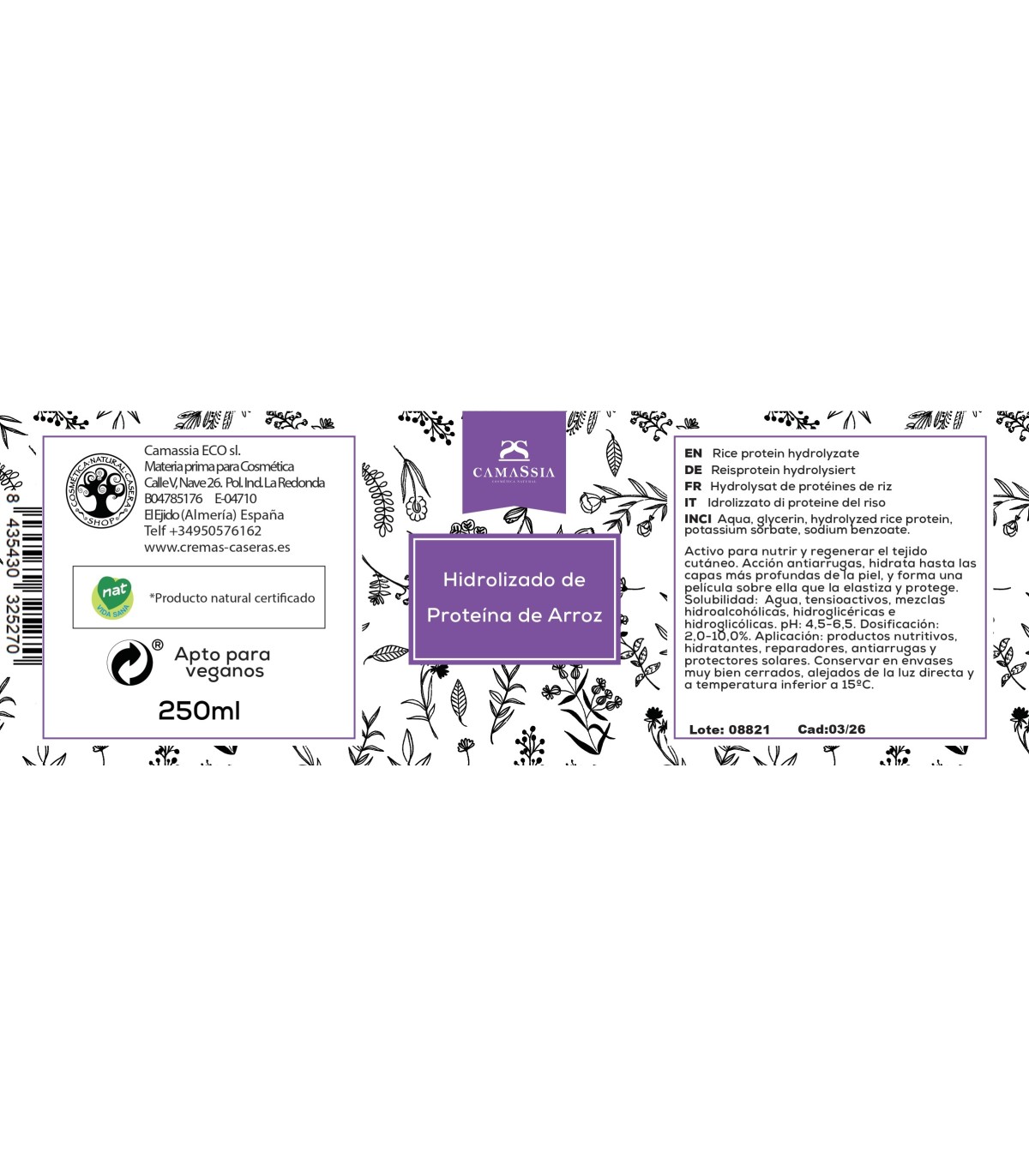 La proteína de arroz ha sido sometida a un proceso de hidrólisis con el que se consigue que las proteínas se reduzcan a aminoácidos y péptidos para penetrar mejor en las capas de la piel.