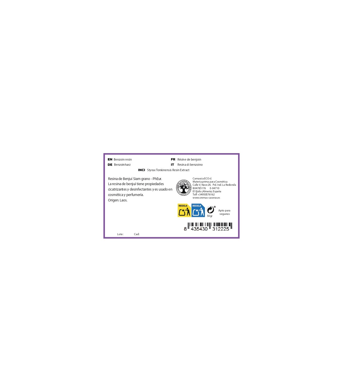 La resina de benjuí es una sustancia resinosa aromática que se obtiene de los árboles del género Styrax, concretamente del benjuí de Styrax. La resina se produce como resultado del agrietamiento natural de la corteza y se recoge en una masa dura similar a un bloque de ámbar. Es ampliamente utilizado en perfumería, aromaterapia, industria alimentaria e industria cosmética.